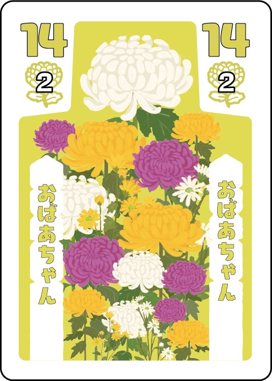 各プレイカードは「お墓におさまっている故人」であり、その故人への「お供え物」のイラストを掲載させていただきました。