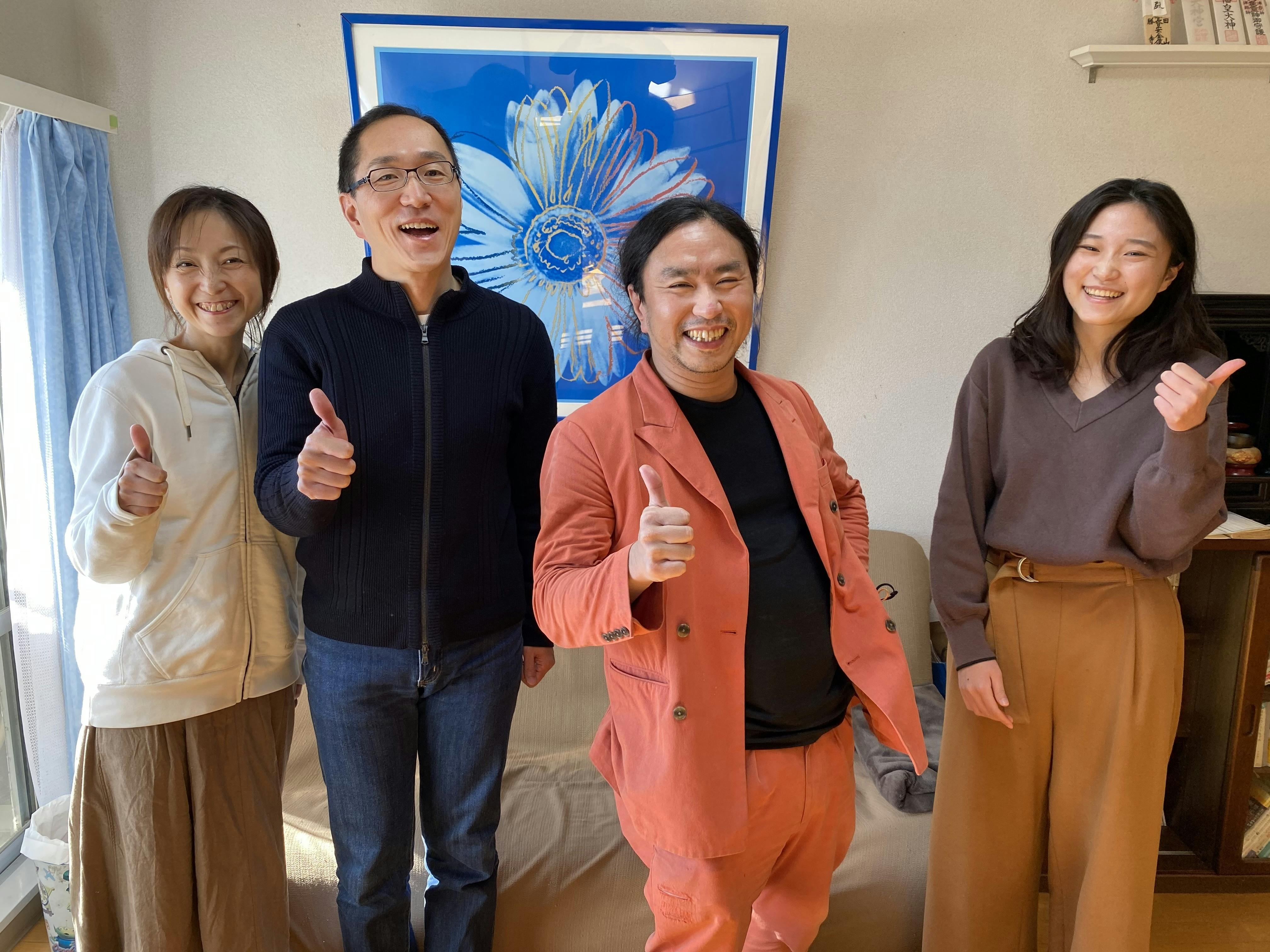 監督・古新舜(左)と佐々木さんご家族(中)、出演者の杉本さんご夫妻(右)
