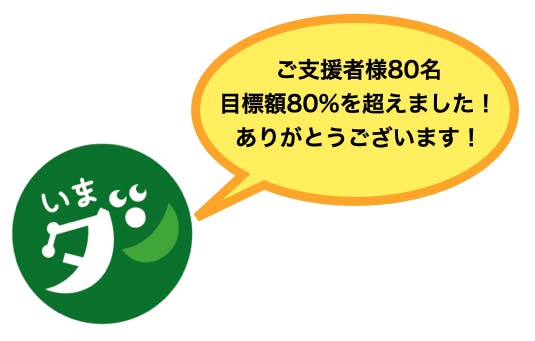 80名のご支援者様によって、目標額の80%到達いたしました!