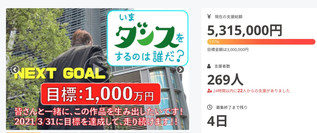 ご支援者様が230名となりまして、500万円を超えることとなりました。