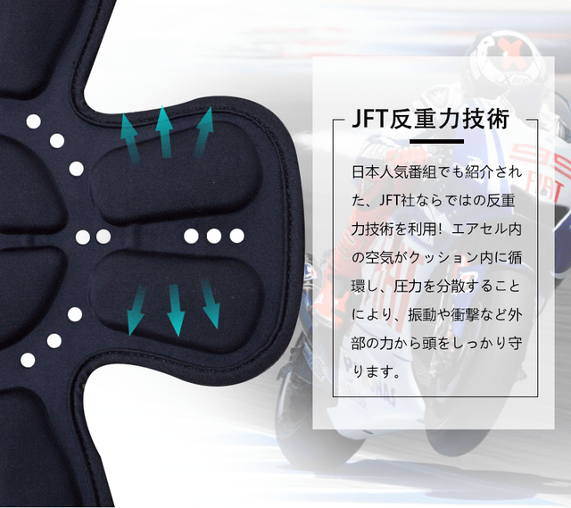 そして今回のHead Fitも、もちろんJFTの一番得意としている反重力技術「エアセルラップアラウンド耐荷重方式」を使用!