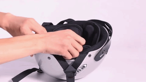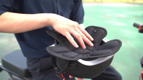 クッションをヘルメット内に入れるだけ!わずか1,2秒の時間ですぐにご使用になれます。