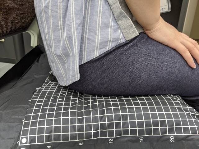 (測定器の上に体重をかける試験を行いました。実際の事故が起こった場合の衝撃とはまた若干異なります。)
