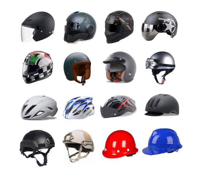 バイク・自転車走行、通学、工事現場で使用されるヘルメット。