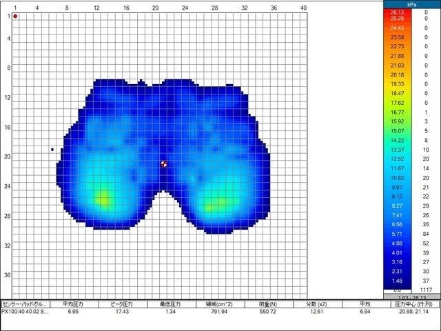 画像にありますように、Head Fitを使っていないときのピーク圧力が34.13に対し、使用後17.43と、49%の力が分散されました。