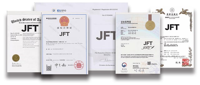 30年以上の開発経験を持ち、JFTの工場もISO9002、ISO9001、ISO2000などの国際認証を取得しており、その功績と実力を中国に評価され、2020年には中国最大のテレビ局CCTVに優秀ブランド「品牌强国」と評価されました。