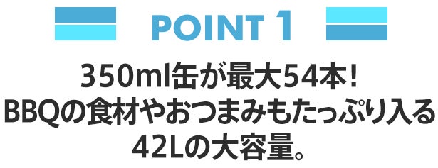 - ① ポータブルなのに350ml缶が最大54本入る42Lの大容量。車と家庭の両電源で使用可能。