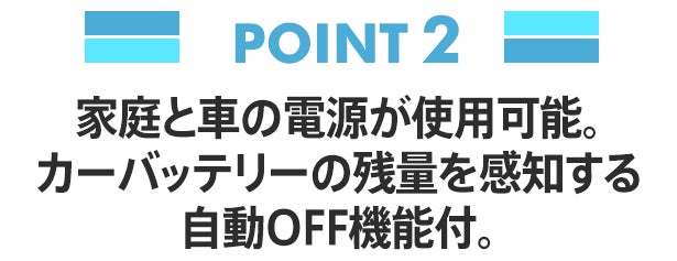 また車のバッテリー残量を自動的に感知し、残量が少なくなると自動的にOFFになる機能を搭載。