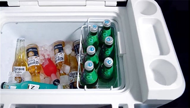 また【Qrey 42L】は350ml缶と500mlのペットボトルが置けるボトルホルダーと、簡単なおつまみが入るトレー付き。
