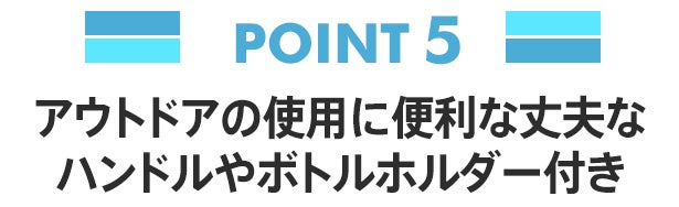 - ③ 電源を切っても冷気を最大4時間キープ。ボトルホルダー付きでアウトドアでも大活躍。