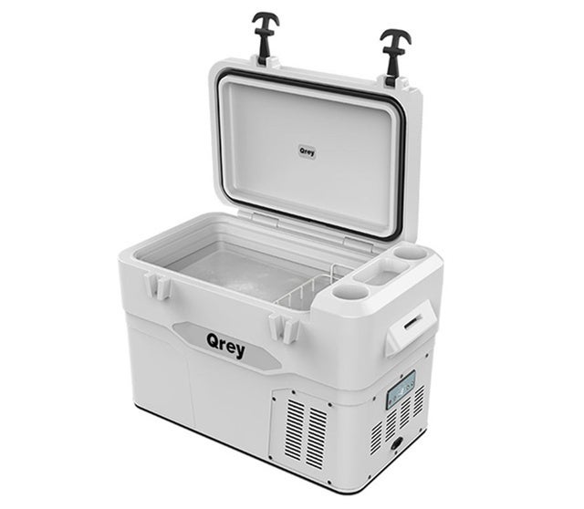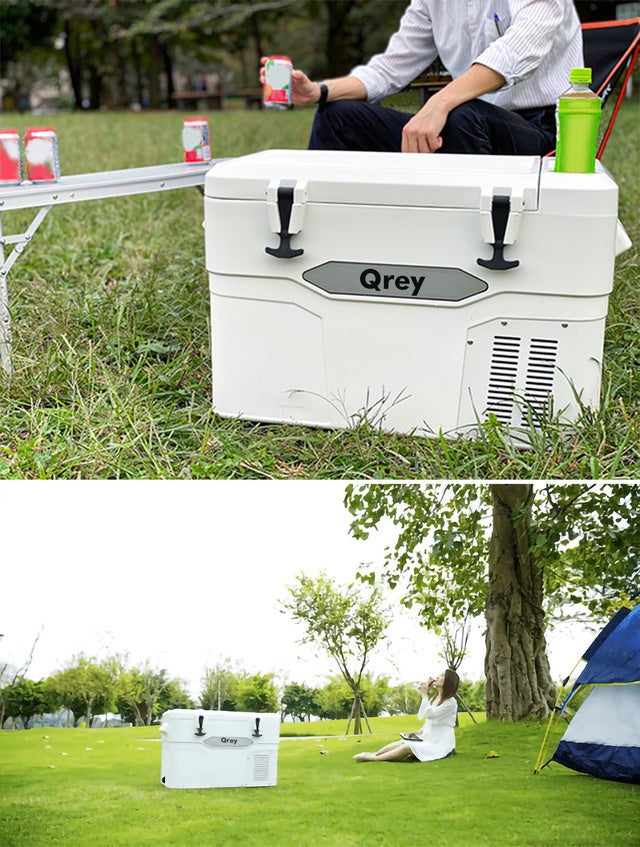 - 【Qrey (キューレイ)42L】は42Lの大容量を誇るコンプレッサー式のポータブル冷蔵庫。省エネ設計で-18℃まで急速冷凍します。