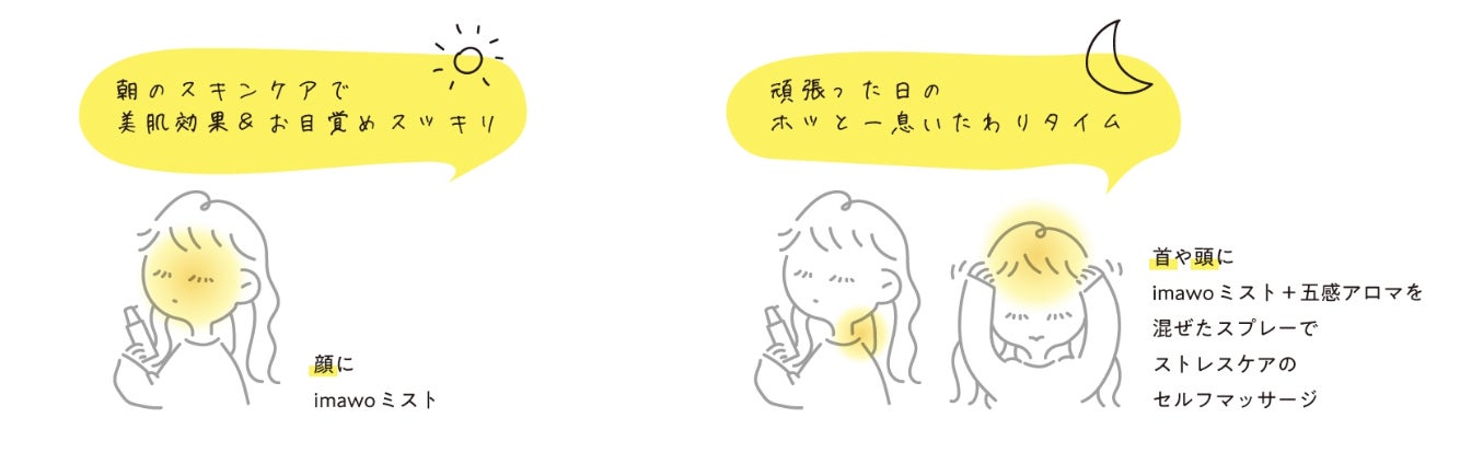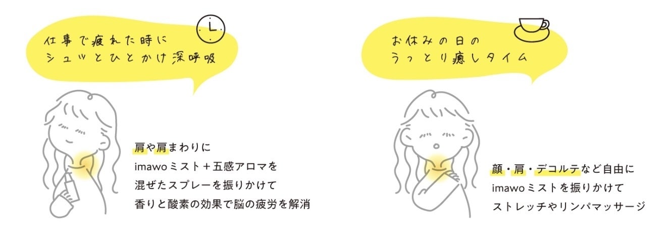 ※imawoミストローション・五感アロマ共に、効果には個人差があります。あらかじめご了承下さいませ。