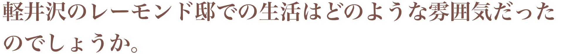 内藤: まず、私達が、この1958年の夏、3ヶ月滞在した別荘はI氏の持っておられた物件です。旧軽井沢銀座まで歩いてすぐの広い土地に小さな建物が数件あった家を3棟借り、1棟がレーモンド夫妻、1棟がM君と私、ここでレーモンド夫妻、セクレタリーと5人で朝昼晩の食事を共にしましたね。その他、コックさん、運転手、女中さんの為の1棟があって、皆そこで寝泊まりしていました。私達のところでは、朝、早く起き、皆様が来られる前に、布団をたたみ、食事のテーブルを出しておかねばなりませんでした。日曜日は、コックさんのお休みの日で、皆、5人で外で夕食を取ります。レーモンドさんは、いつも、たわいのない事を云って、皆を笑わせて下さいました。でも、夕食には必ず、ワインが付き、土曜日には、スコッチの水割りも付きました。1958年の日本の夕食では、考えられませんリッチなものでした。