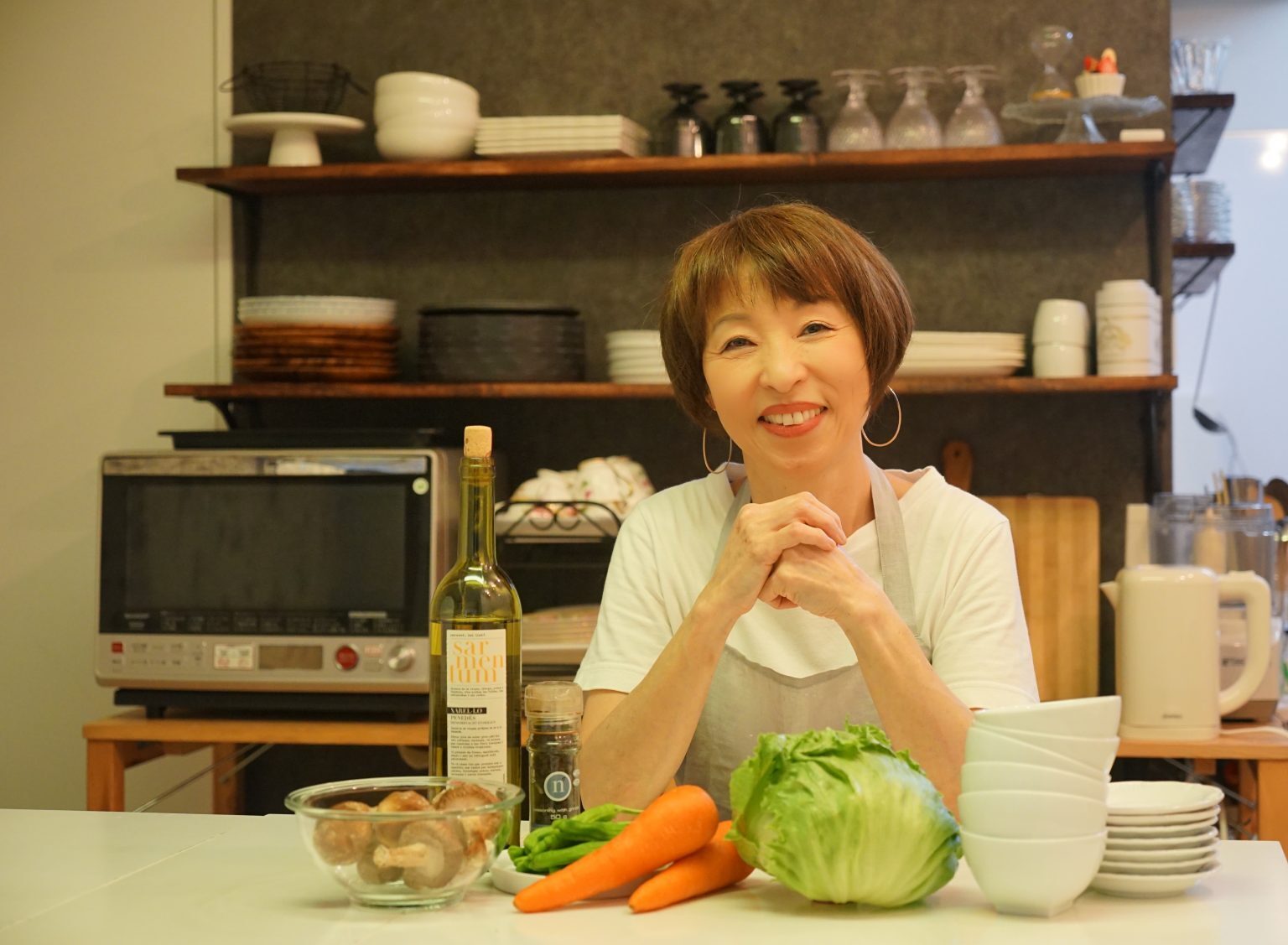 50歳になった頃、「糖質オフ料理」のレシピ開発を友人から頼まれ、1年ほどで気付くと11号だった洋服のサイズは7号、Sサイズになる。本格的に糖質オフ料理レッスンに一本化し、健康と食の両方から料理を提案する「糖質オフスタイルCooking」をスタート。