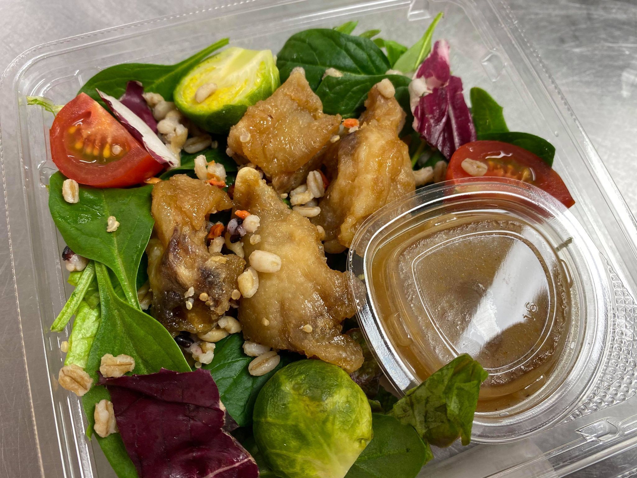 ほうれん草と豚足の唐揚げのオシャンティーサラダ!