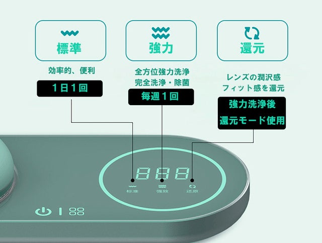 標準モード(3分):毎日一回、最短3分で効率的にレンズを洗浄。