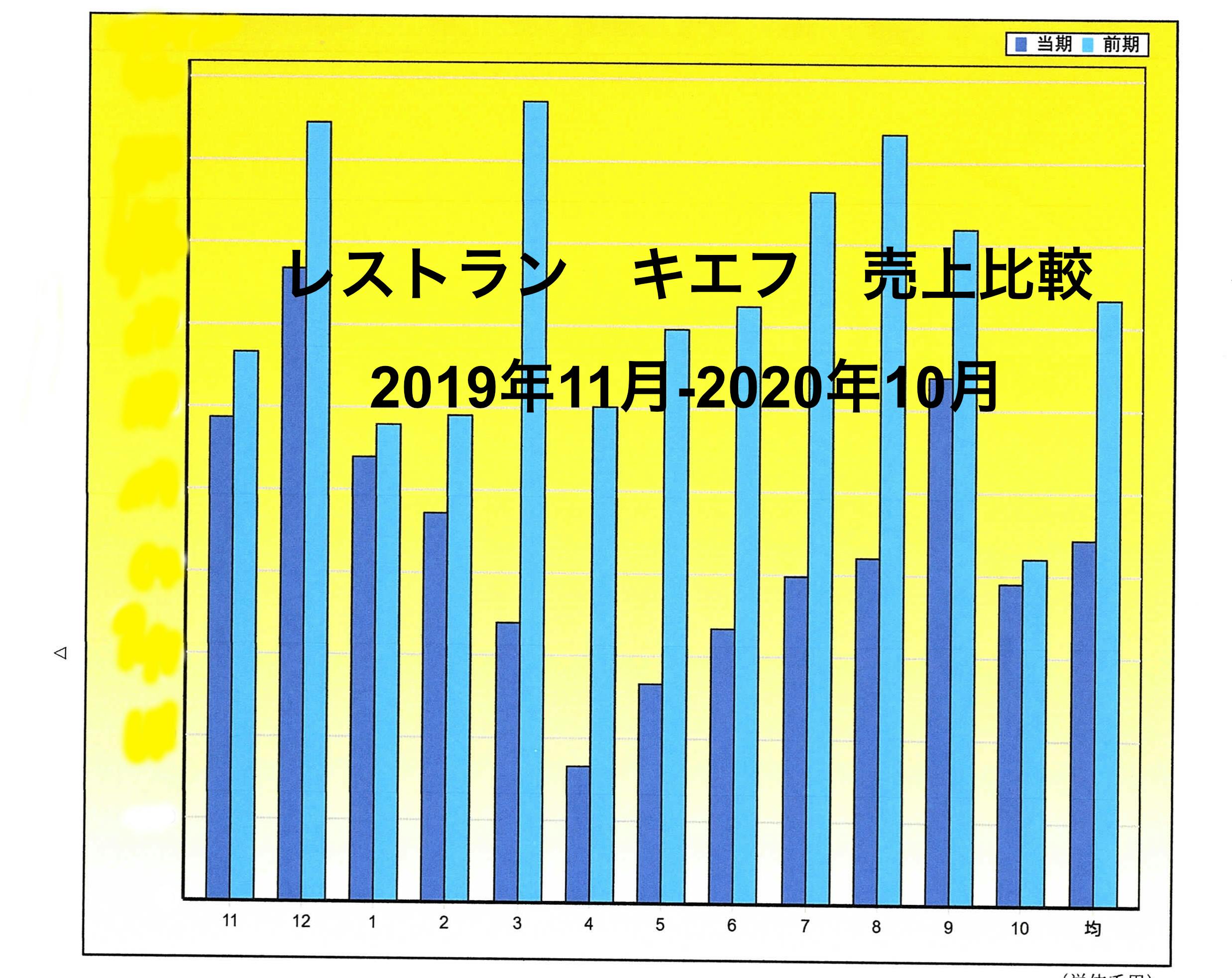 レストランキエフは、レストラン営業とライブやイベント開催を中心に行ってきました。しかし、2020年度はコロナが蔓延した3月ごろより、営業時間の短縮や宴会予約、ライブのキャンセルが相次ぎ、業績が悪化してきました。3−5月は前年度の1/3まで落ち込み、6−8月も前年度の半分と、レストランの存続危機にまで陥りました。