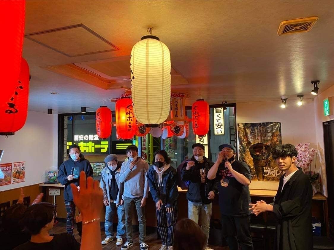 西野さんご本人に道頓堀に現調にお越しいただき、道頓堀商店会、商店連盟の役員との顔合わせ、支援者の皆さまと決起集会を開催しました。前回のZOOM会議の流れから、サプライズゲストに、ET‐KINGさんもスペシャルゲストに迎えさらに集会は大盛況となりました。
