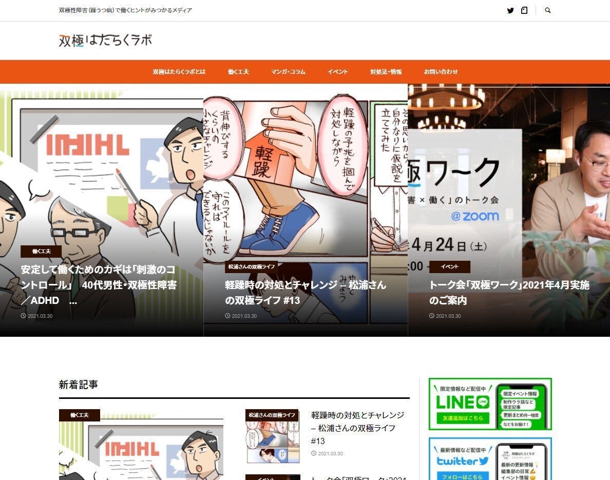 世界双極性障害デーにあたる本日、「双極性障害で働くヒントがみつかる」をコンセプトとするWebメディア『双極はたらくラボ』を公開しました。
