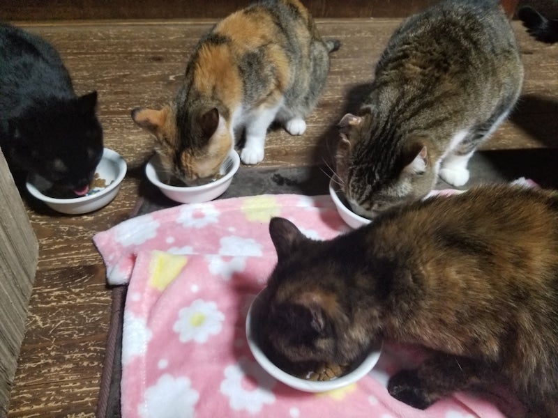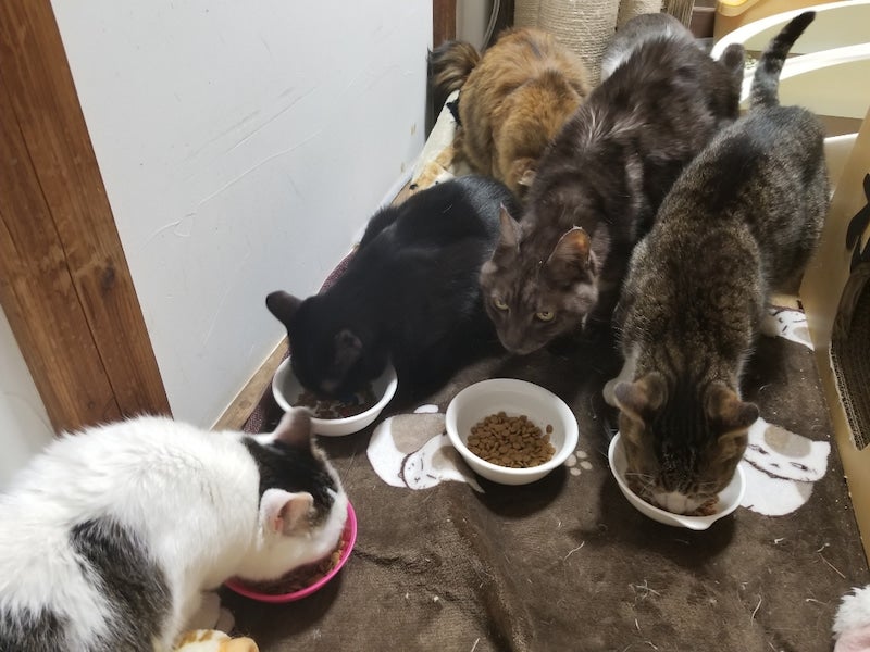 猫たちへとご購入いただいたシシア缶をあげたり。