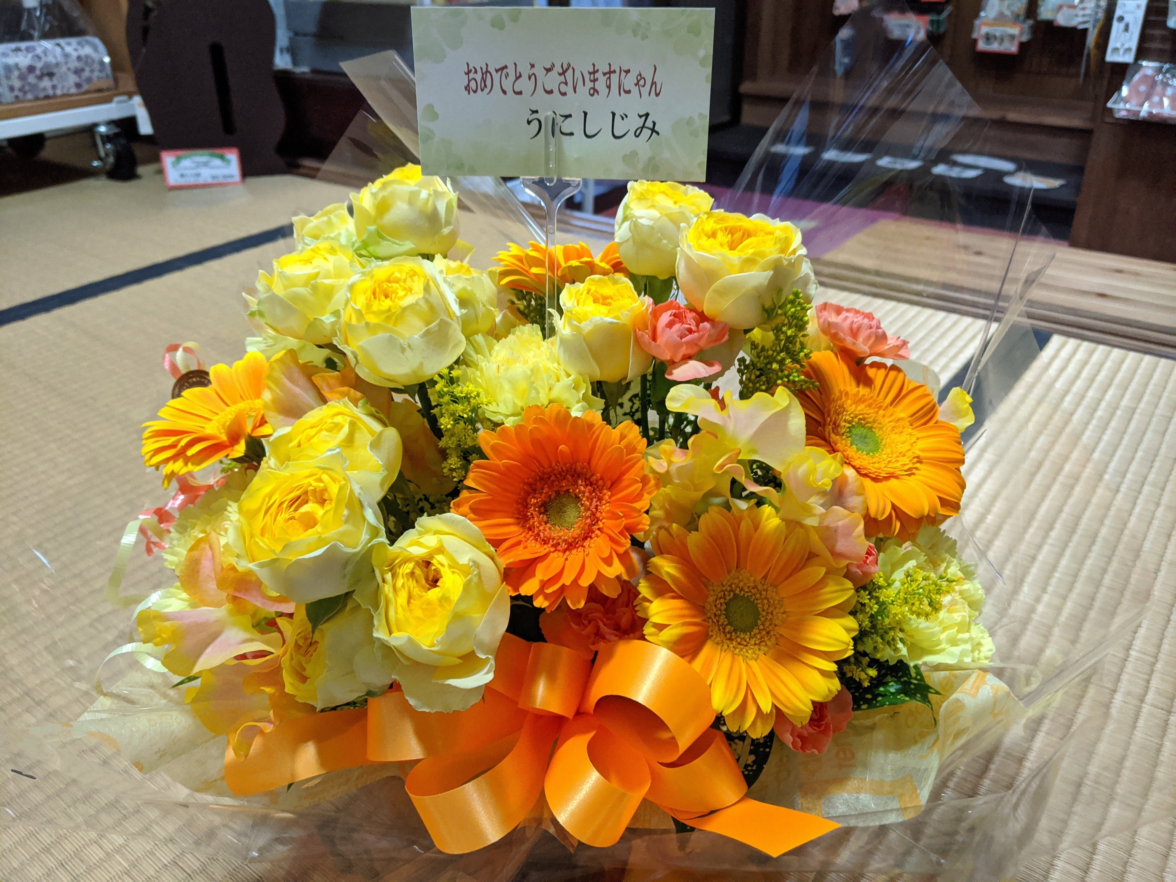 常連様よりお祝いのお花や手作りケーキもいただきました。