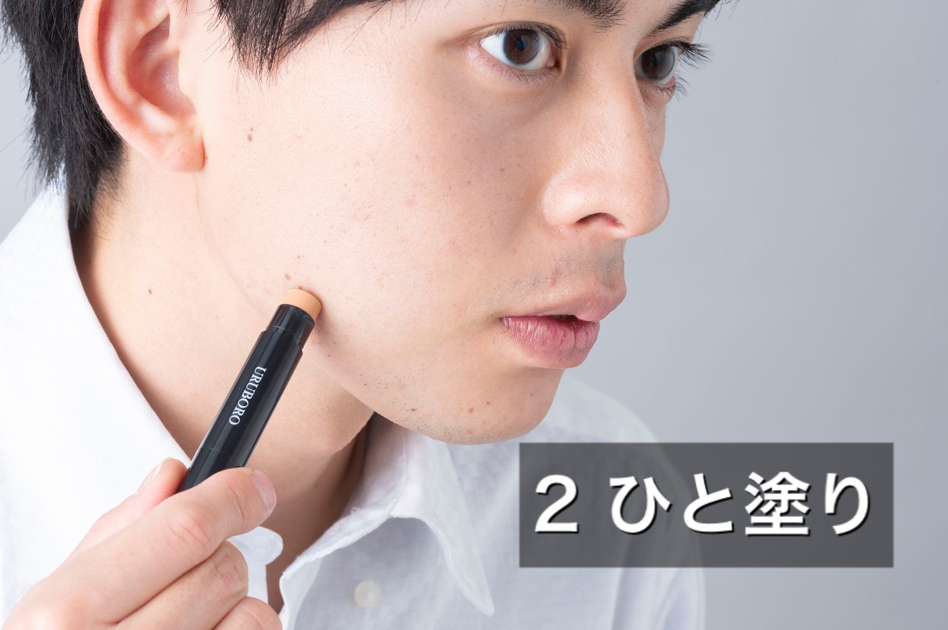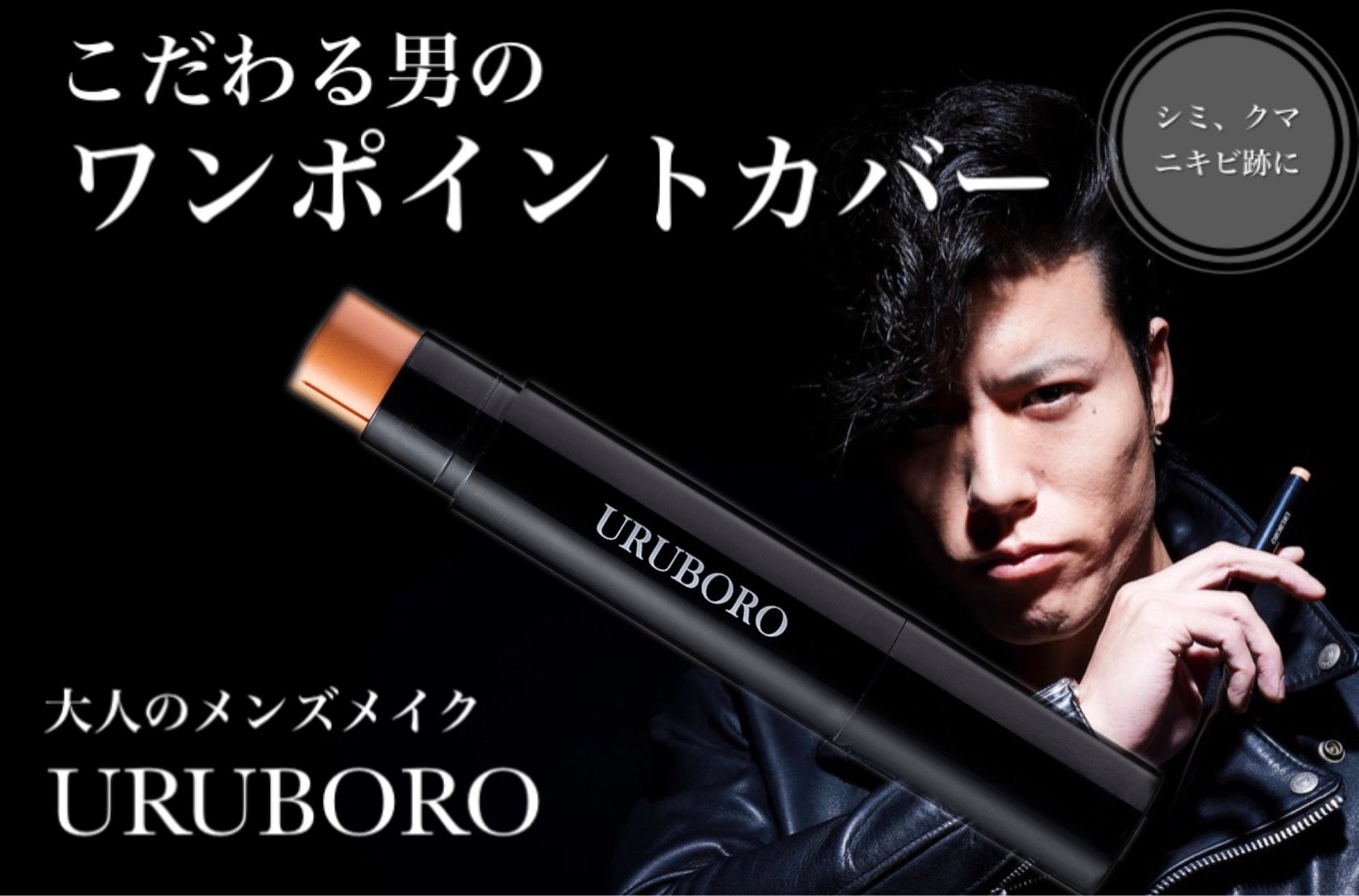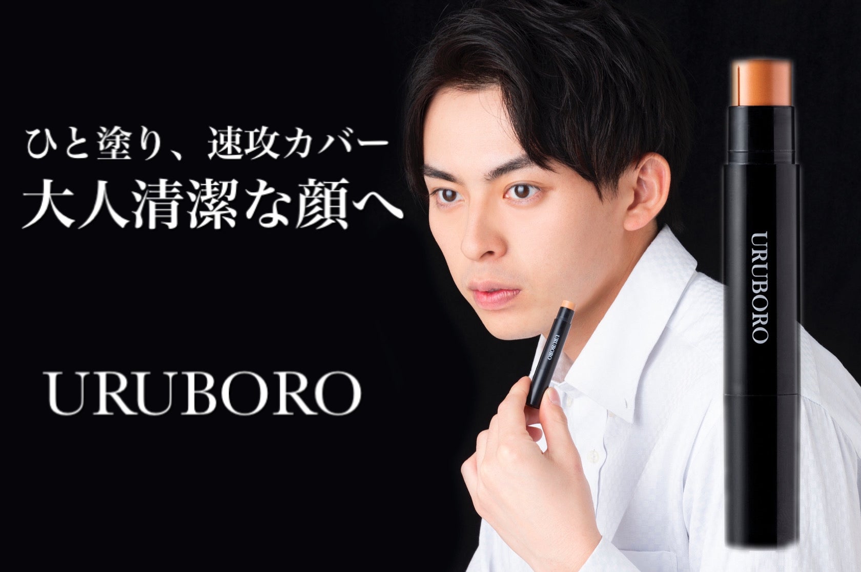 URUBOROのワンポイントカバーは、シミ、クマ、ニキビ跡などの肌荒れに、ひと塗り速攻カバー!また、使用が周りの人から一目でバレづらいように、大人男性の肌色に近い色を実現しました。こだわり抜いた固くマットな質感で長時間しっかりカバーします。さらに、メイクによるさらなる肌荒れを防ぐために抗炎症成分を配合しております。これ一本で大人清潔な顔へ!