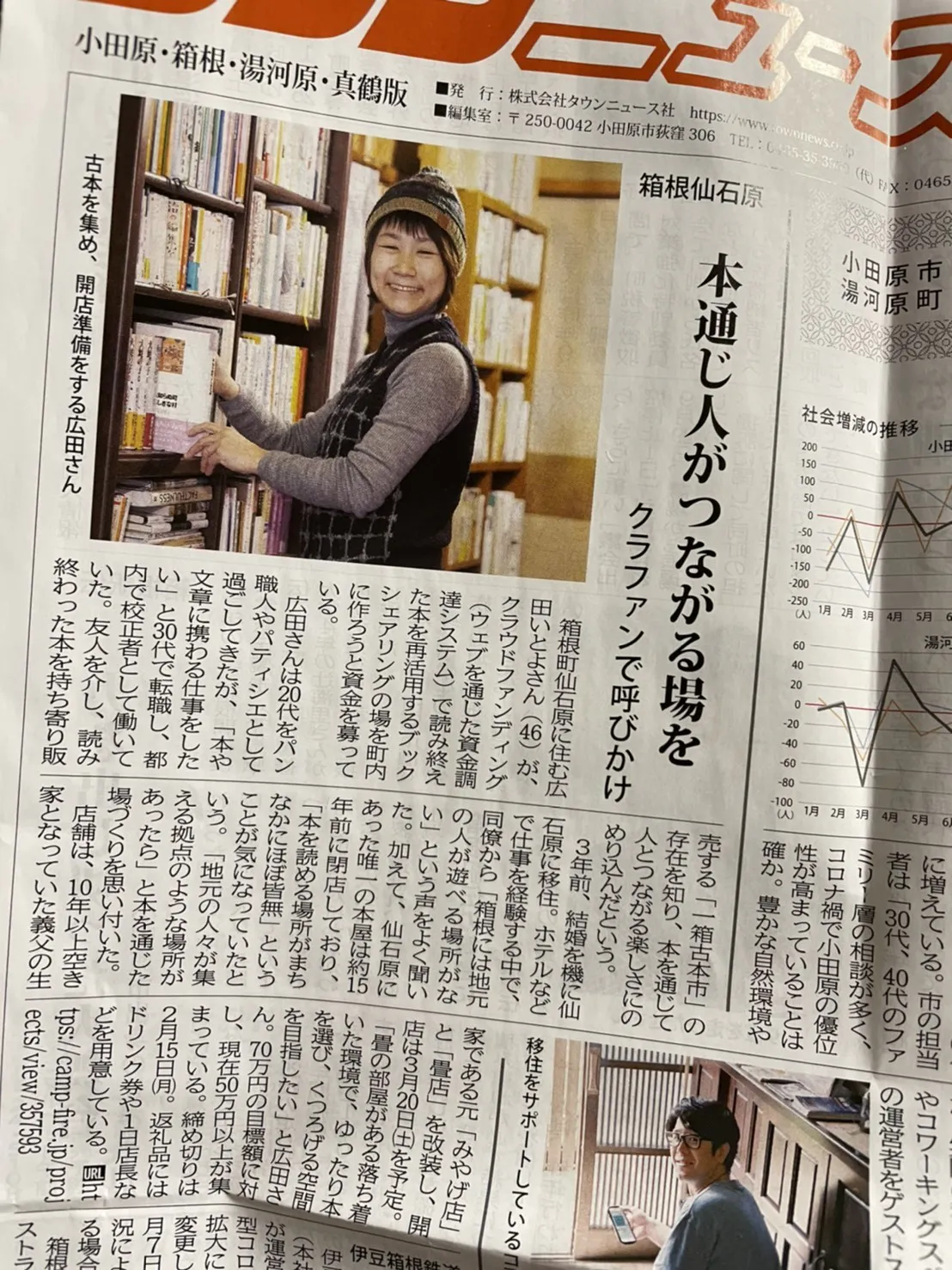 「タウンニュース 小田原・箱根・湯河原・真鶴版」1面に、