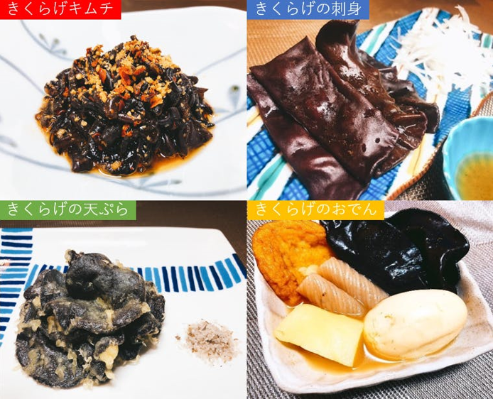 私達がお届けするきくらげは、流通している国産”生”きくらげの中でもサイズが大きいです。それに加えて、”生”きくらげは”乾燥”きくらげと違った魅力的な”ぷりぷり”、”コリコリ”食感を味わうことが出来ます。おでんや天ぷら、お刺身にしてお酒と一緒に魅力的な食感を味わってみてください!