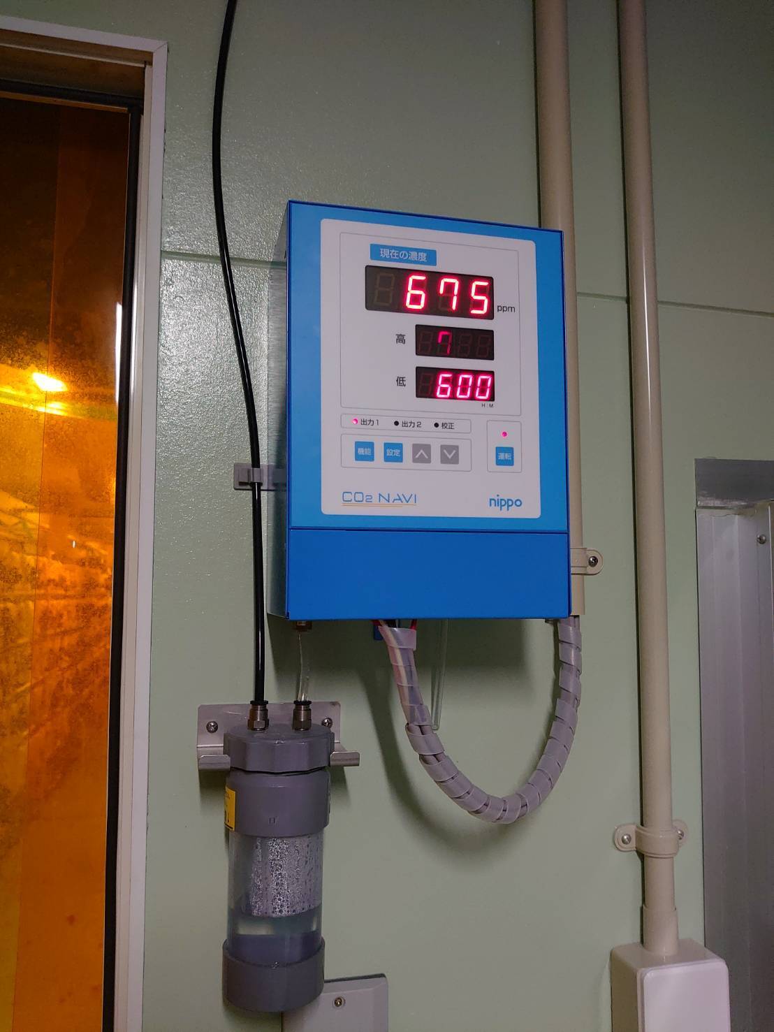 CO2計測モニター:常にCO2濃度を計測し良質な空気環境を保っています。