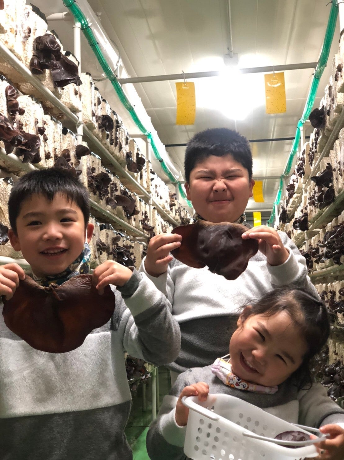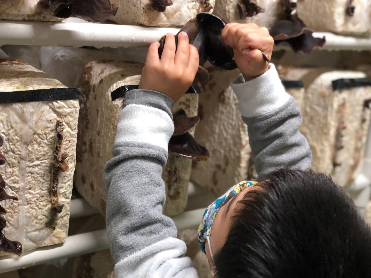 子供たちにきくらげの収穫作業から洗浄作業までを行ってもらいました!!