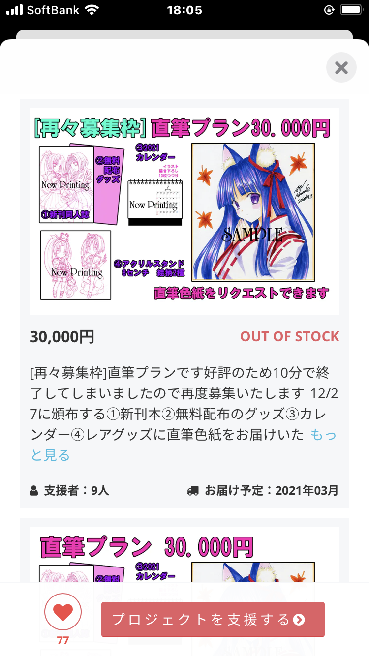 【再々募集枠】直筆プラン終了しました。開始から4分くらいでしたか。ありがとうございました!そしてストレッチゴールを達成しました!¥1.000.000達成ありがとうございます!追加リターンに関してはまた活動報告やTwitterで告知いたしますプロジェクトも明日2020/12/15の23:59で終了ですあともう少しですがどうかよろしくお願いいたします!
