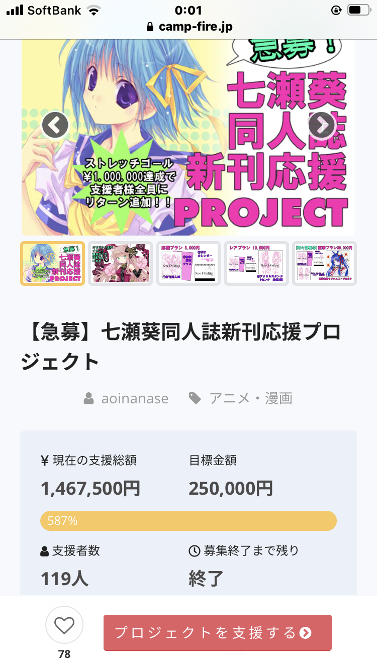 先程プロジェクト成功で終了しました!12/9から12/15までの6日間、たくさんのご支援ありがとうございました!リターンのグッズや本につきましてはこれから頑張ります追ってこの活動報告にてご連絡していきますね本当に感謝しております!ありがとうございます!