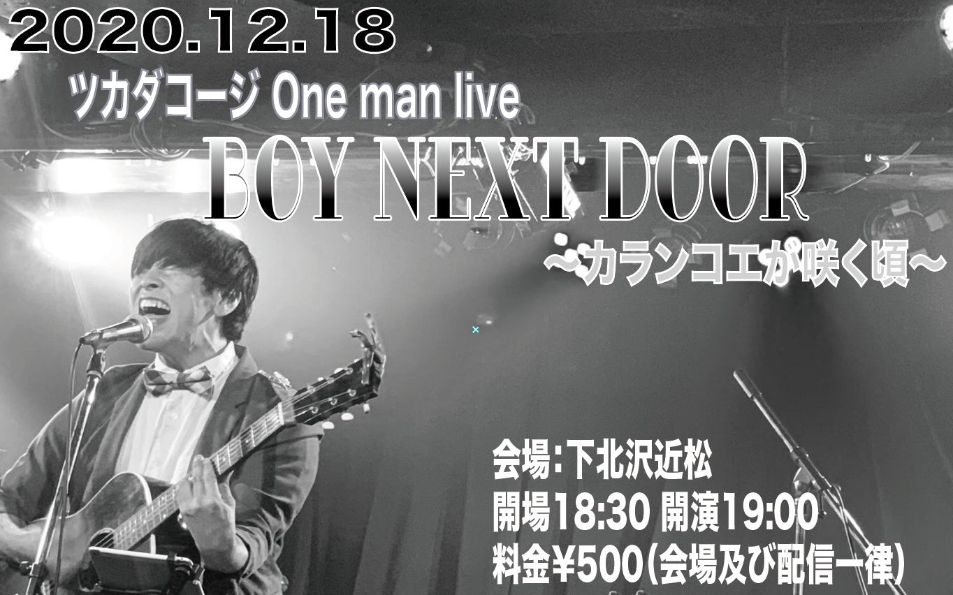 今回は、このコロナ禍の中、「沢山の人に音楽を聴いて欲しい!」というただそれだけの想いから、会場チケット代及び配信チケット代を一律¥500というワンコインワンマンライブに挑戦する、ツカダコージさんをただただ応援したい!