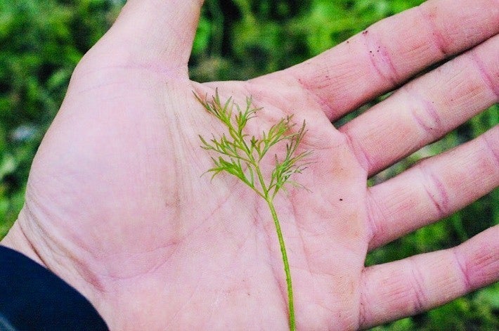 若いディルの先の葉