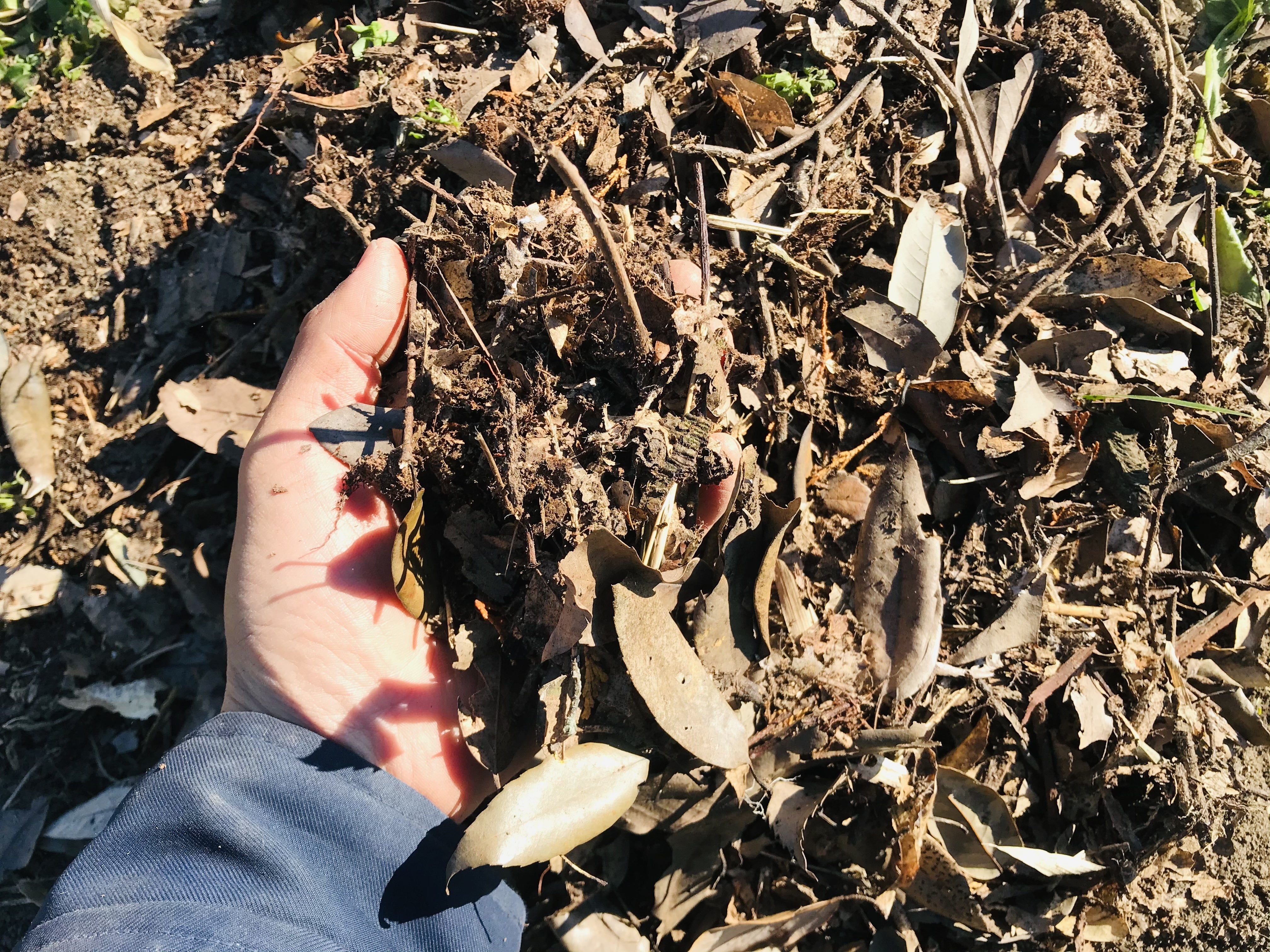 近くの神社の落ち葉や刈った雑草を積み重ね、発酵させたものを少しずつ畑に入れています。その土地の味や香りが出ると思うからです。
