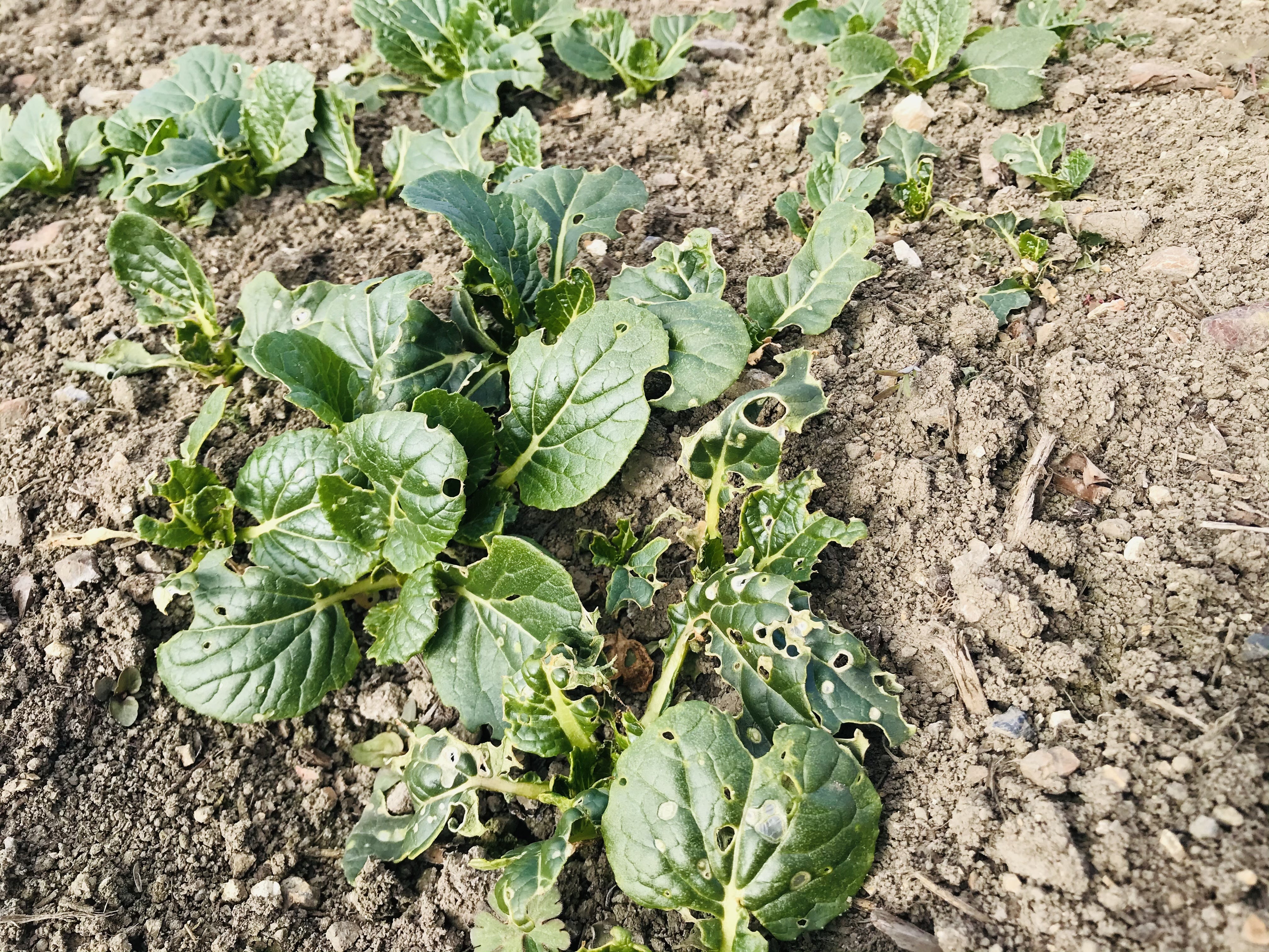 農薬を使わないので虫がたくさん来ます。柔らかい葉っぱなのでいっぱい食べに来ます。