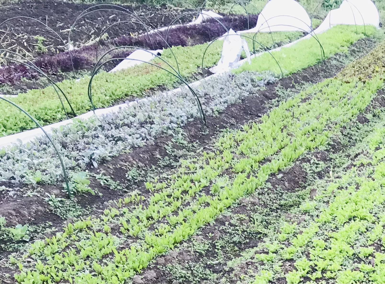 ビニールハウス内だと種をまきたいタイミングで種がまけますし、虫喰いを防げるので理想のベビーリーフが実現できます!
