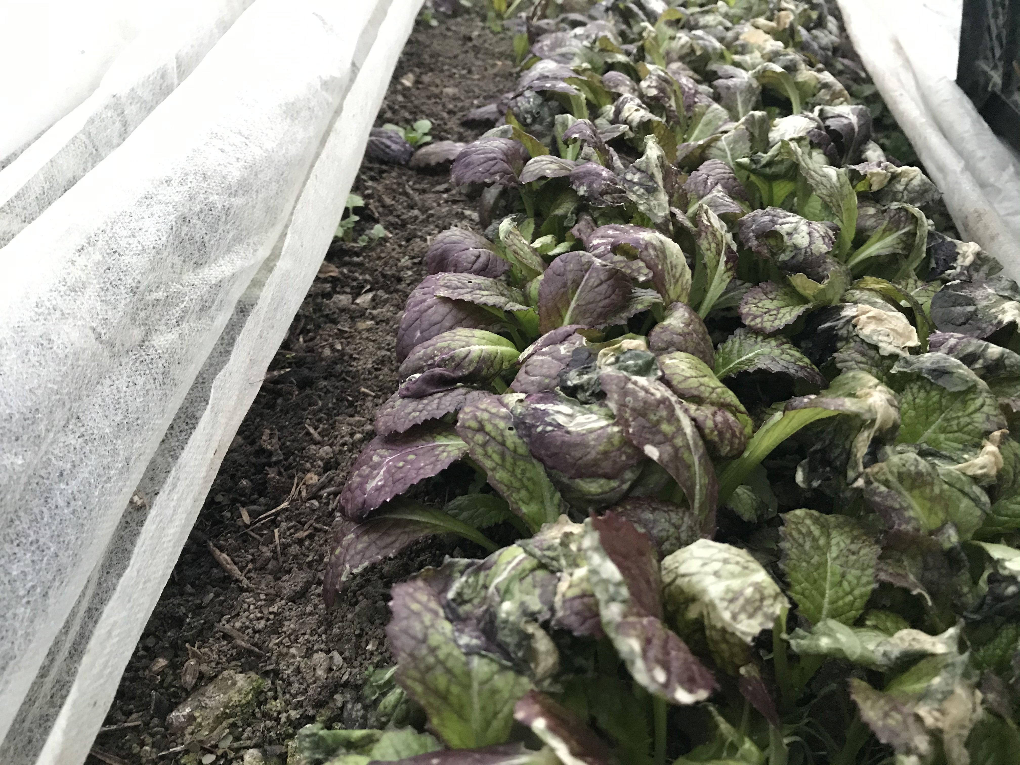 寒さで葉先が溶けてしまったレッドマスタード