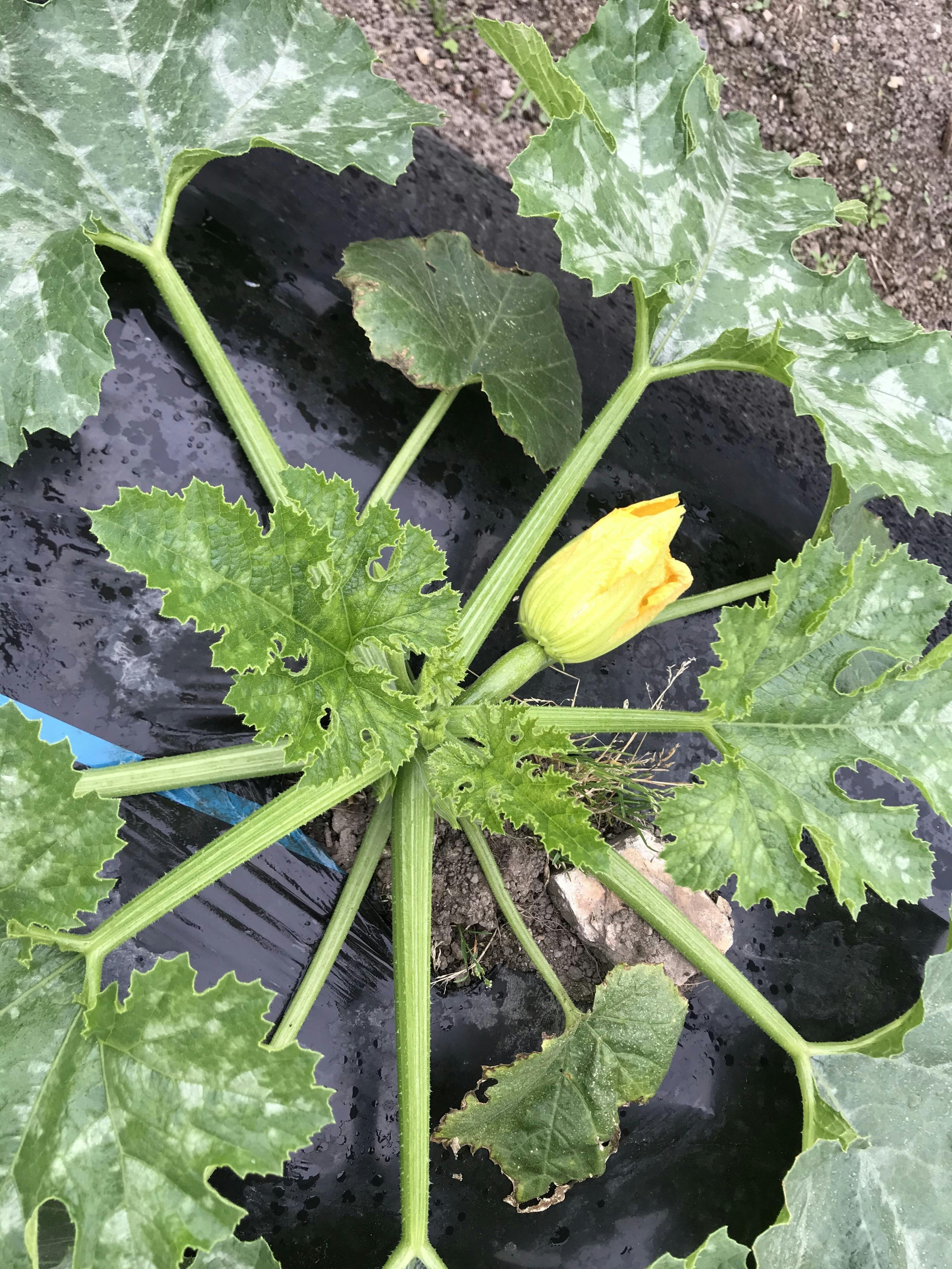 ズッキーニが着実に大きくなってきてまして、花が咲きはじめました。
