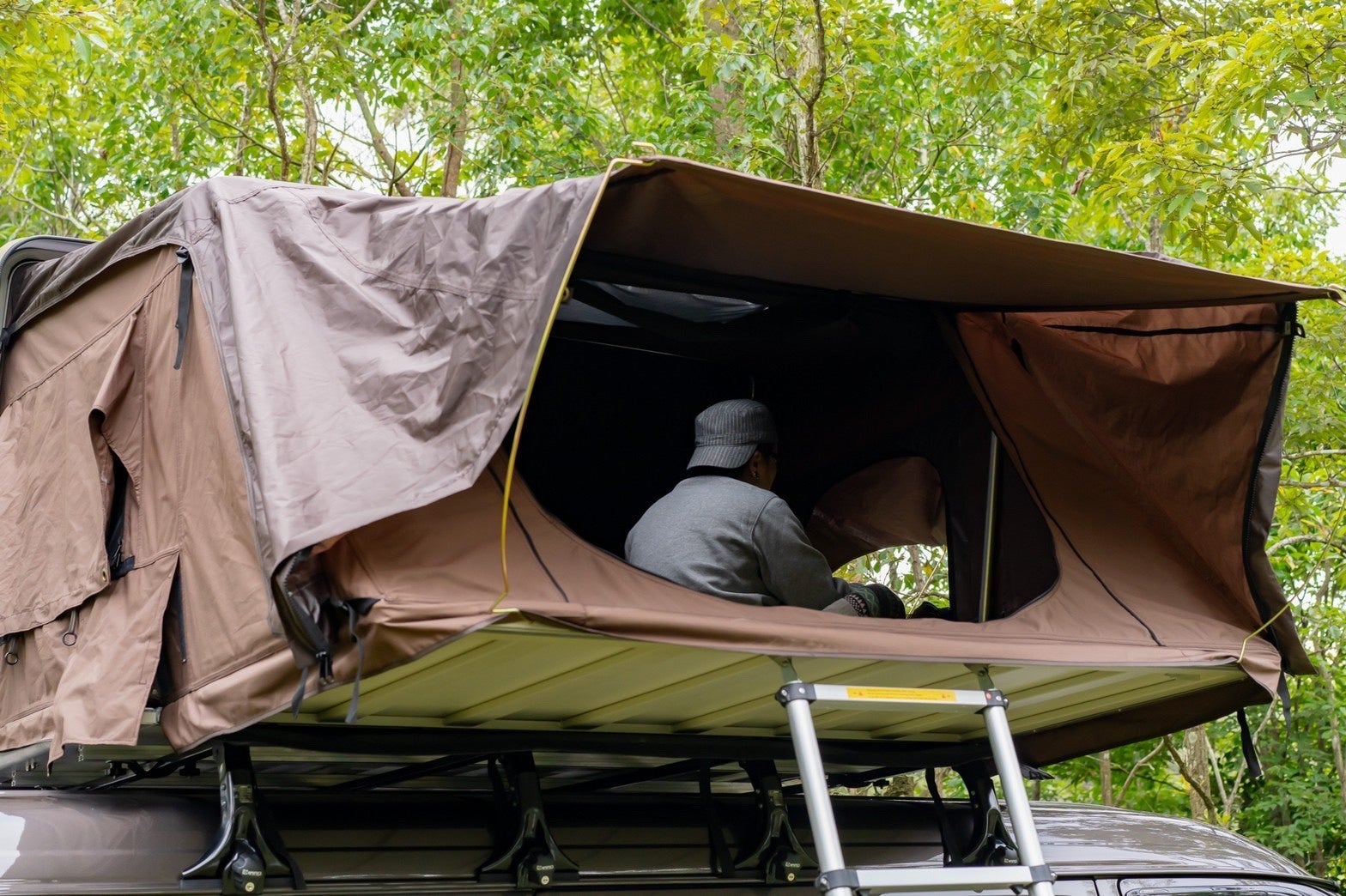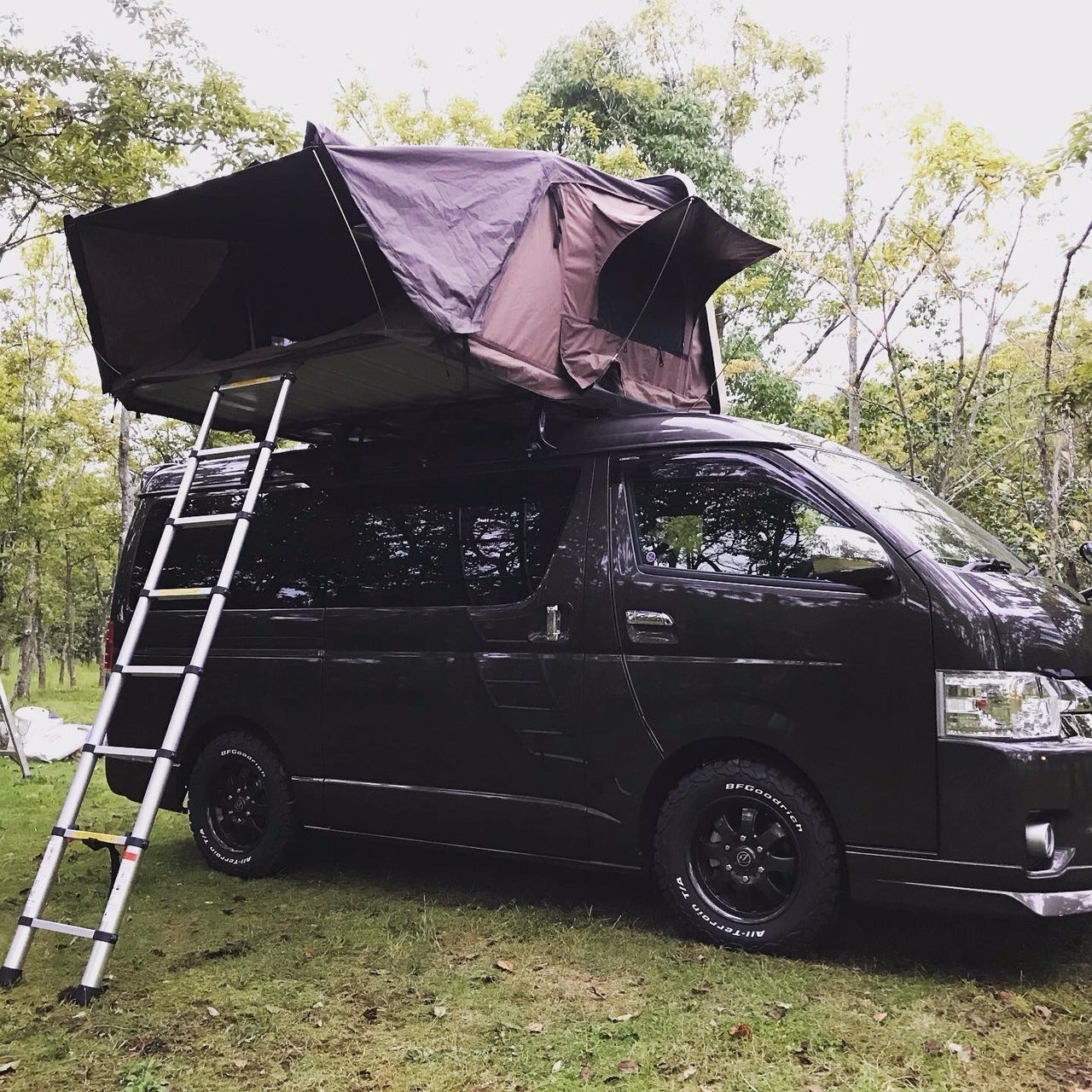 そこで、今回カバーを開けてハシゴを引き出すだけで設営が出来るルーフテントをご紹介します。