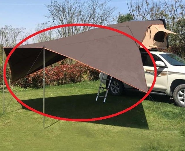 アネックスは、下の画像の様にルーフテント横に取り付け可能なもので日差しを防ぐ事が可能です。