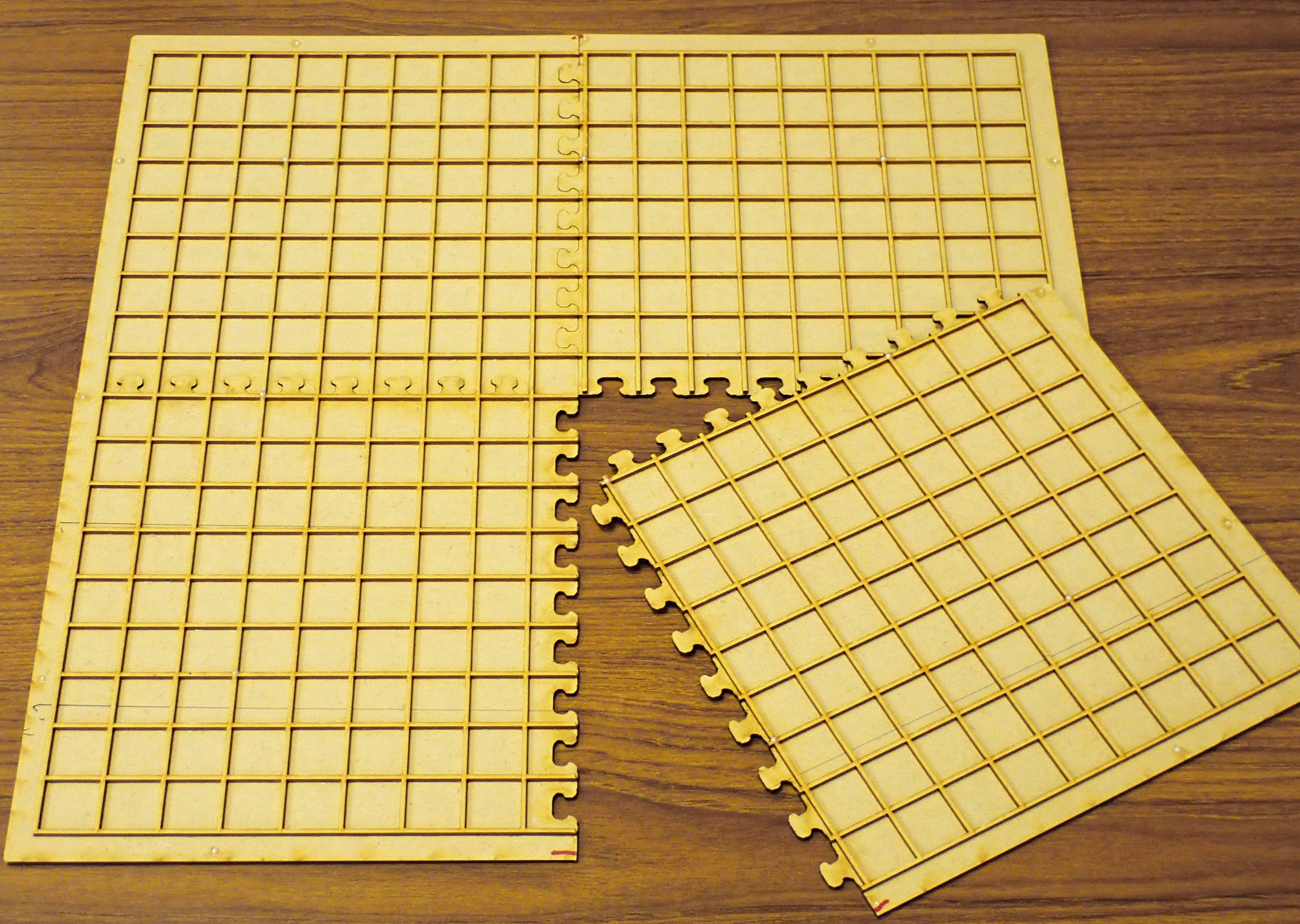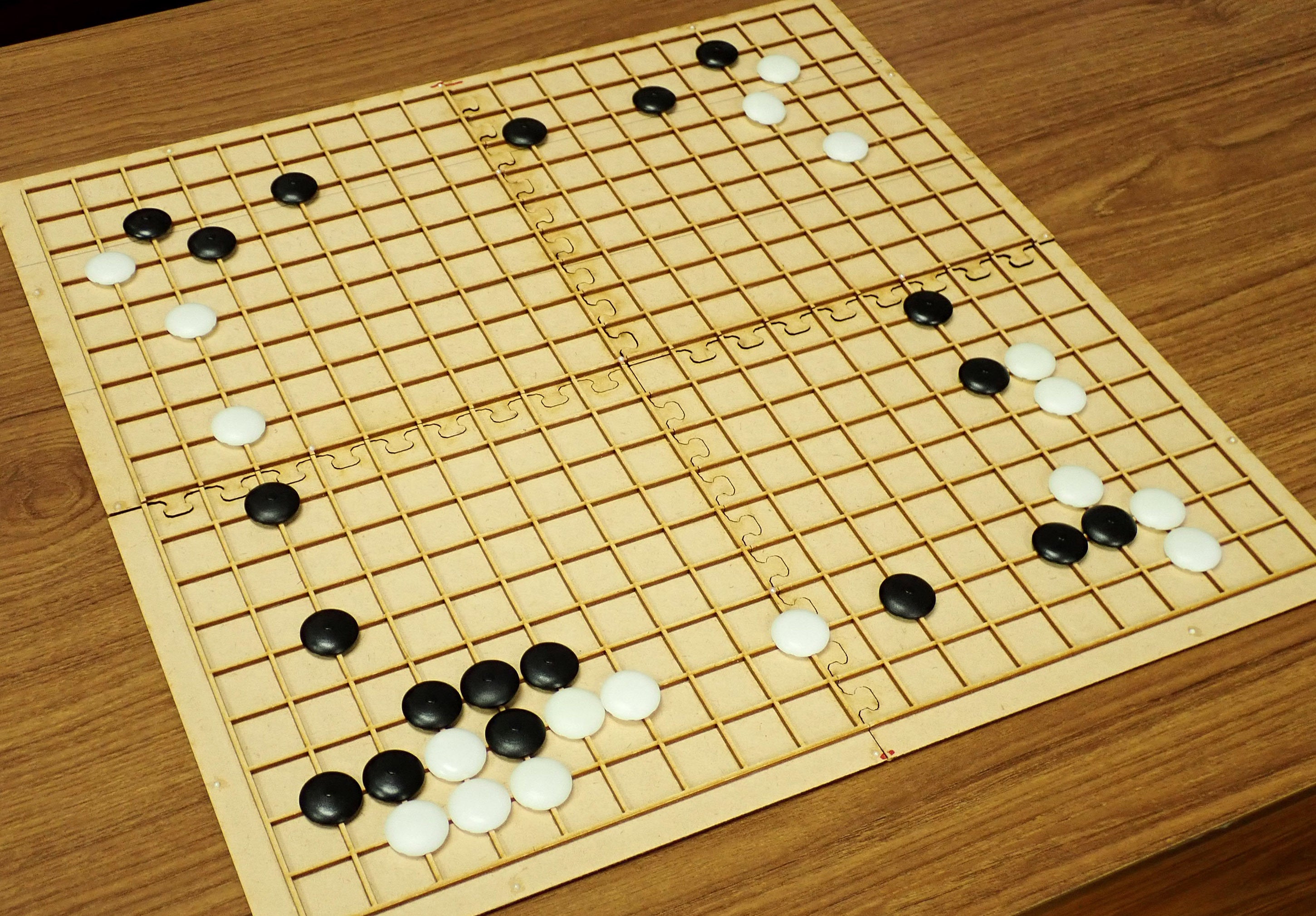 4枚のピースの2辺をかみ合わせることで、しっかりとした19路盤になります。