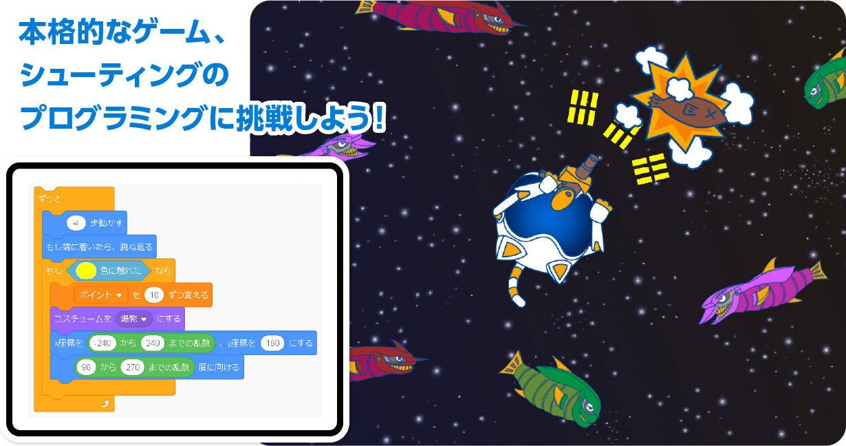 となると、みんな大好きな「ゲーム」作りがオススメ。ゲームは、ルールがしっかりしていて、例外=バグ発生となり、プログラミング学習に、ぴったりな教材なのです。