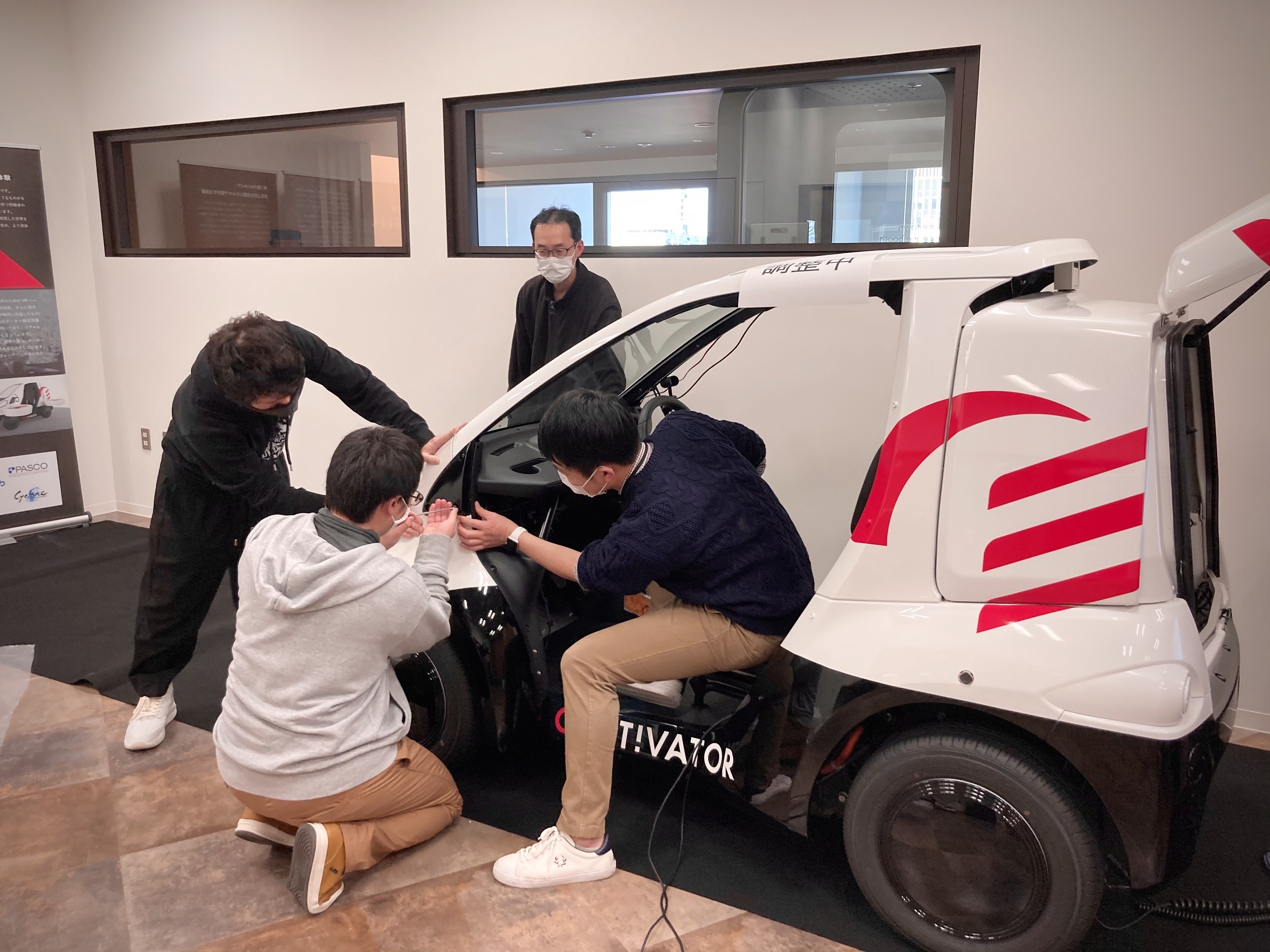 ※写真は空飛ぶクルマ体験用のVR車両を改造している様子です。皆様にご体験いただける日が待ち遠しいです!