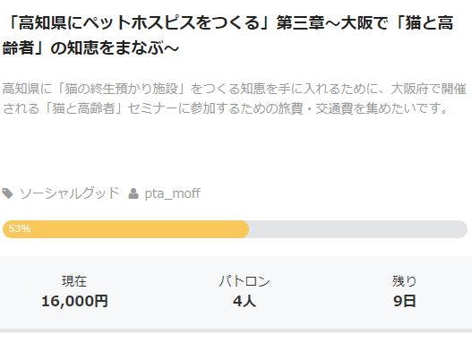 のこり9日。現在4名さまのご支援をいただいます。ありがとうございます。