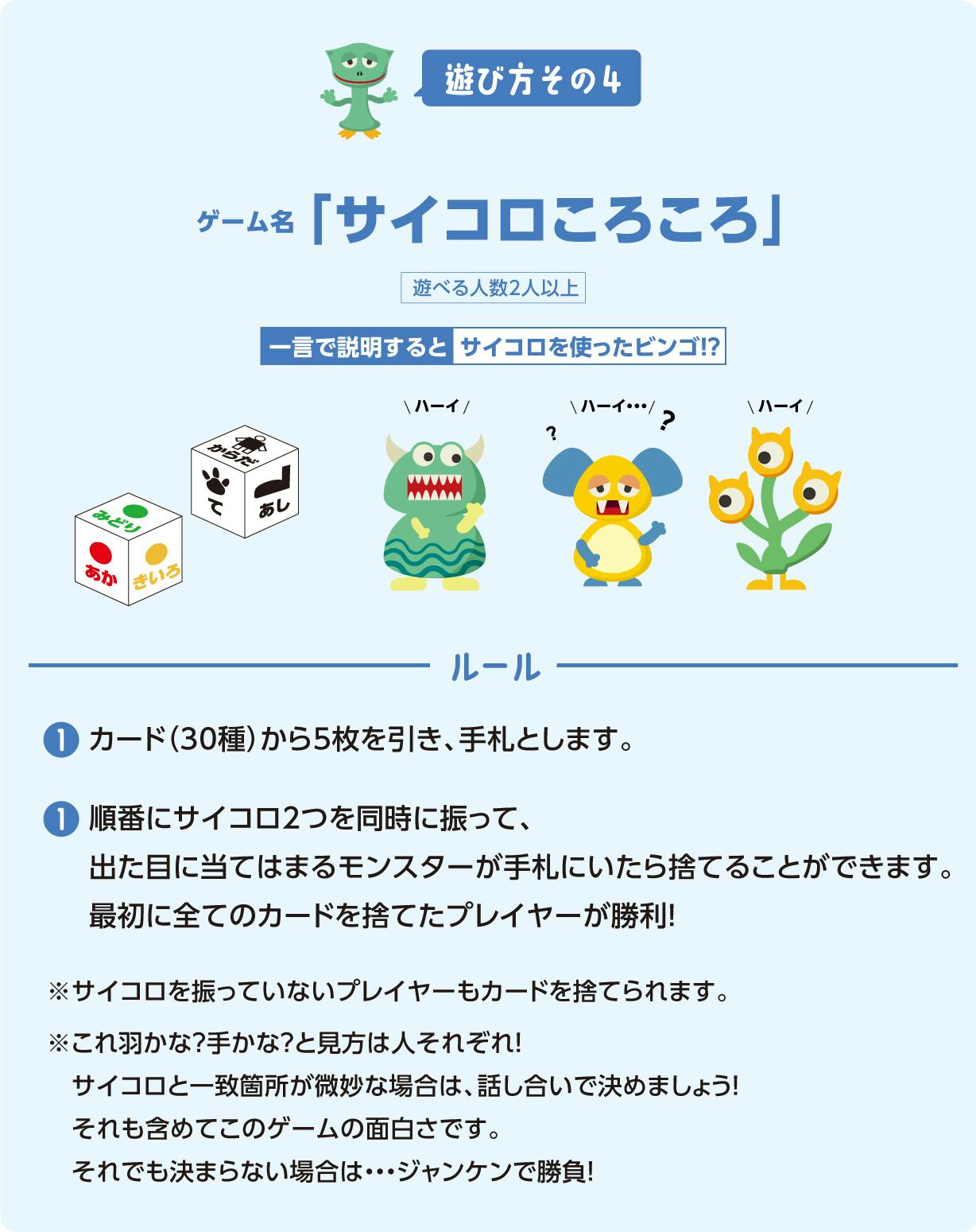 ルールはいずれも5才程度から遊べる事を想定しているため簡単です。