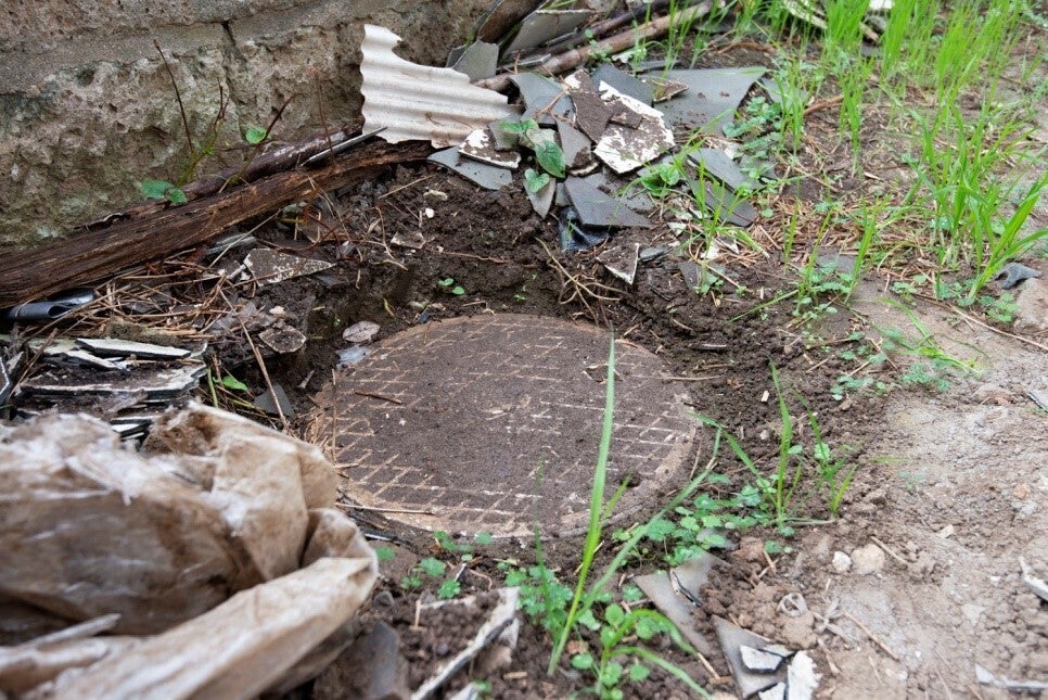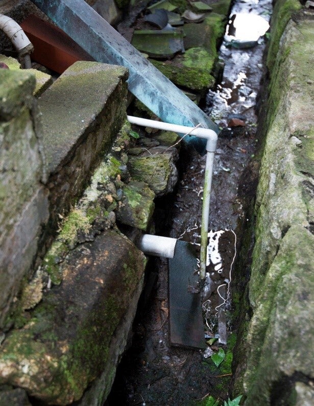 配管は家の隙間、泥の中を通る