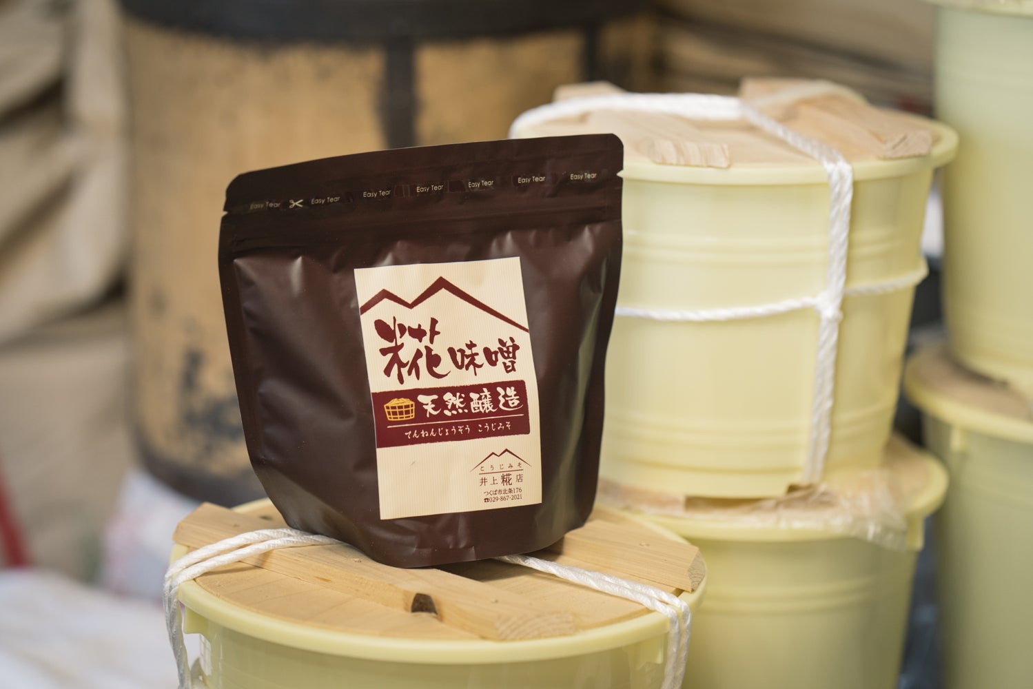 筑波山地域ジオブランド認定を受けた糀店のお味噌です。北条のお米で作った糀と、筑波山麓の大豆と国産大豆を使用したお味噌で、市販の菌を殺した味噌とは違い、菌が元気に生きています。身体にいいだけでなく、毎日食べても飽きない、味も身体にも優しいお味噌です。