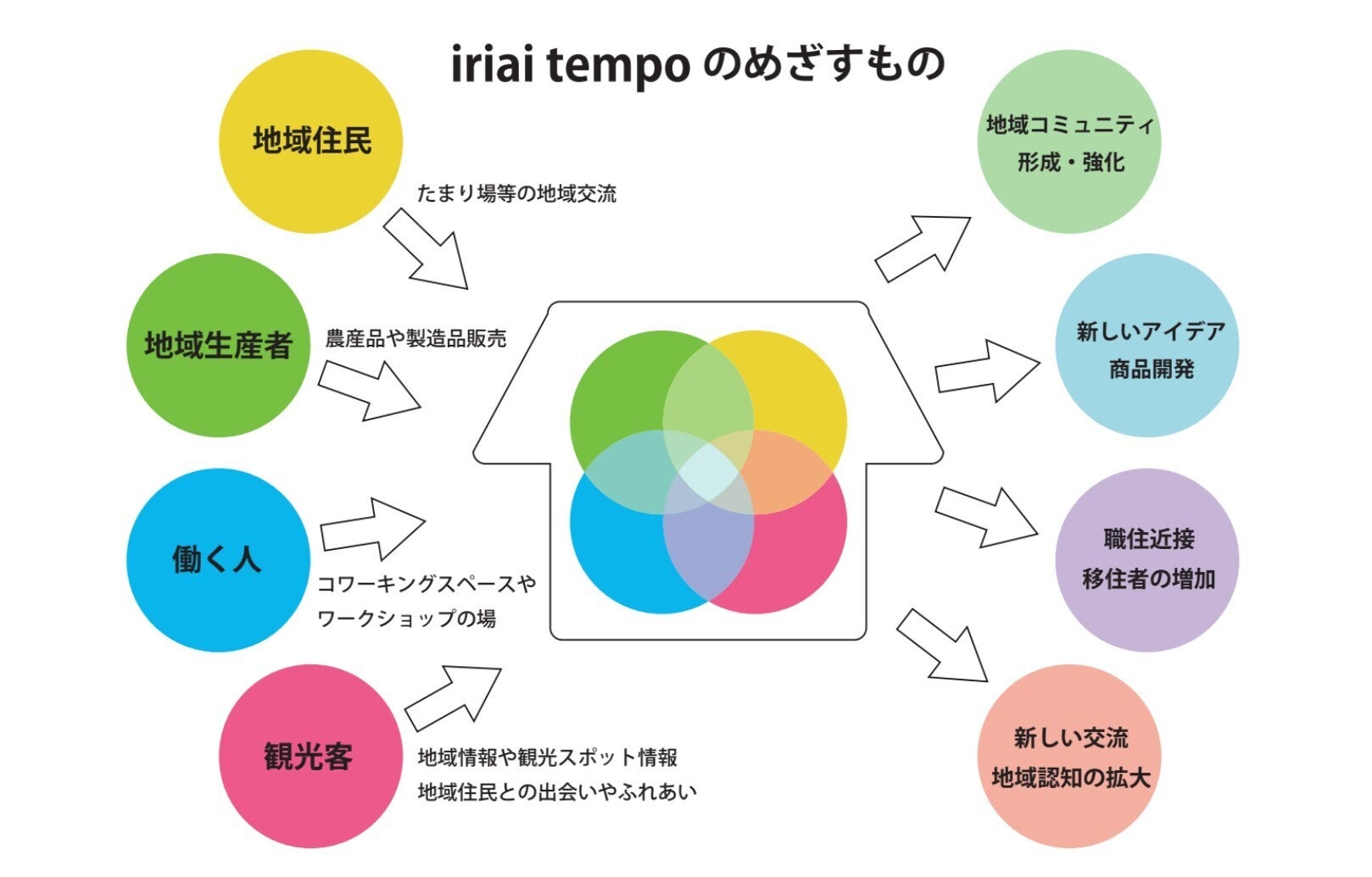 「いりあい」と「店舗」が一体になるという発想は、従来の店と客という関係性から、関わる人々が主体的にその場を作り上げていくことをコンセプトにしています。そして、tempoという時間がその土地の文化を育み、地域コミュニティを作り上げていくことを期待し、iriai tempoはスタートしました。