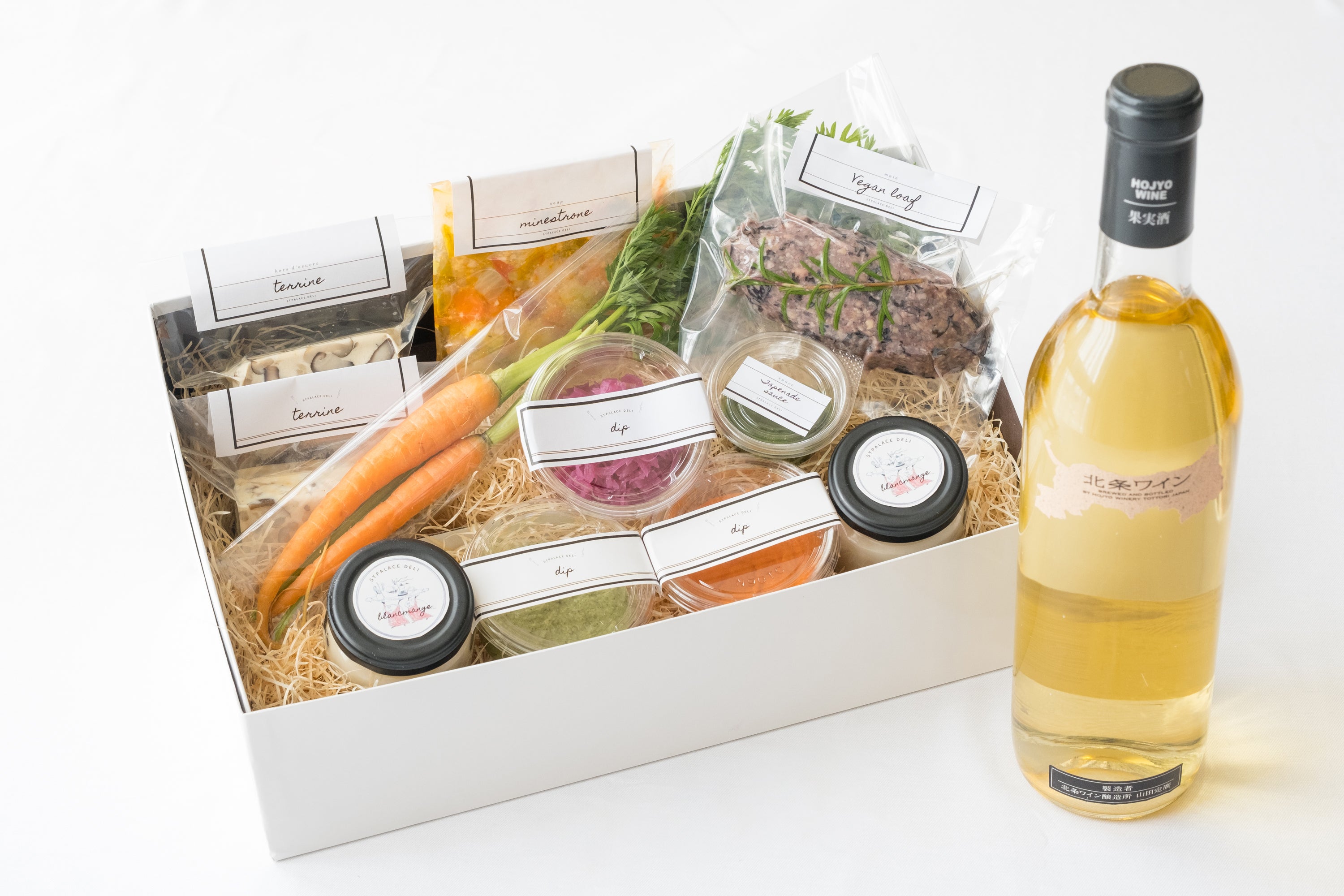 鳥取野菜の魅力、ヴィーガン料理の懐の広さ、鳥取ワインの味わい、鳥取の風土が感じられるお土産品、それらを全部たっぷりお楽しみいただける贅沢なセットです。